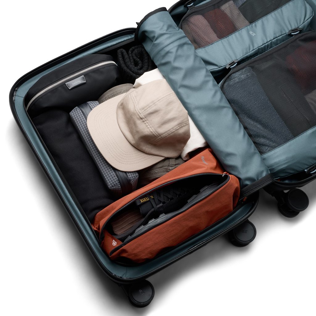 Bellroy Carry-On Plus to walizka skorupowa (tzn. twarda) i z taką samą doskonałą organizacją wewnętrzną, jakiej można oczekiwać od sprawdzonych plecaków Bellroy. Jej wymiary mieszczą się w limitach większości linii lotniczych - czyli tych, które są nieco bardziej hojne, jeśli chodzi o wymiary bagażu pokładowego (pełny przegląd tutaj) - jest wyposażona w japońskie cichobieżne kółka i dostępna w kilku pięknych kolorach.