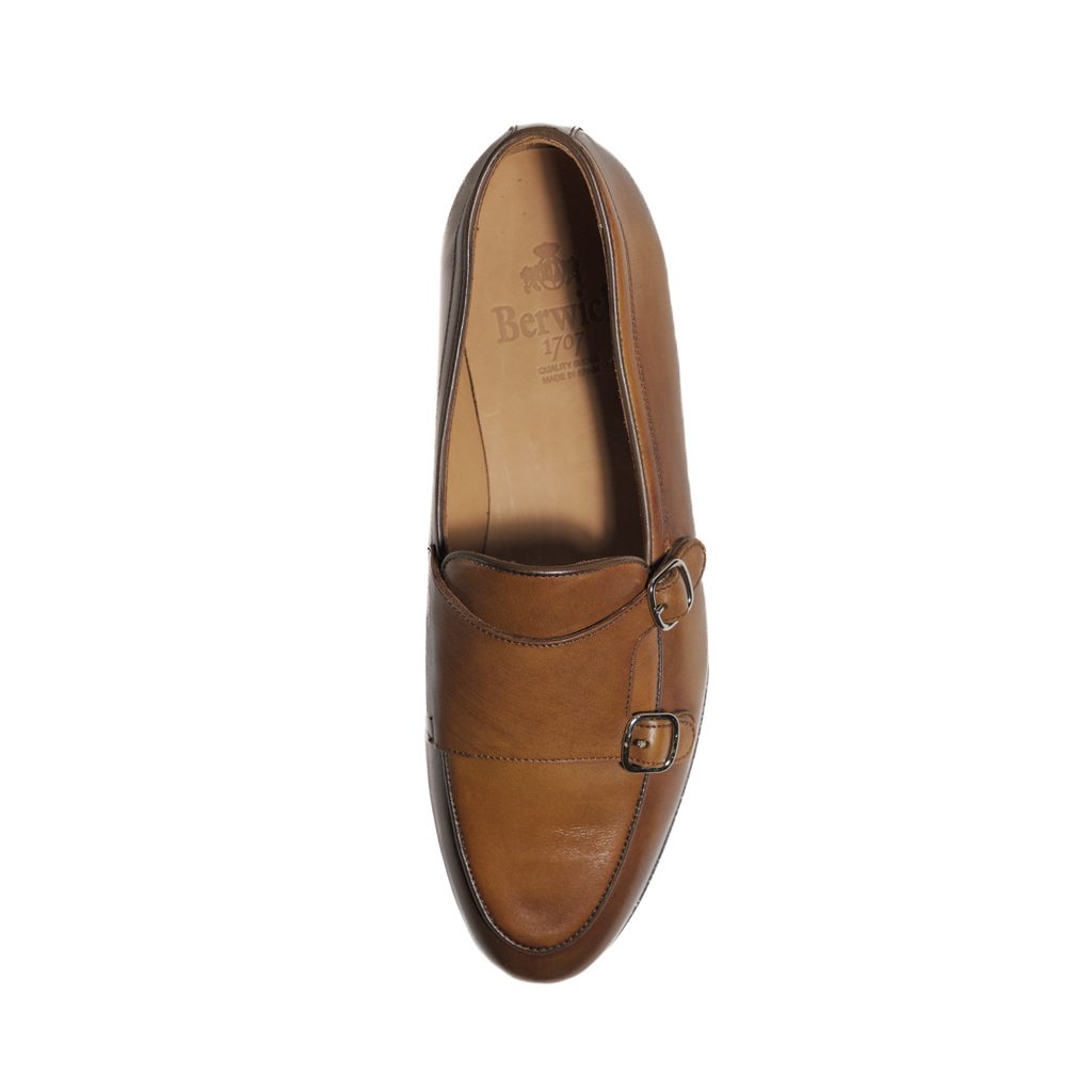Chociaż nie mają charakterystycznej kokardki, możemy śmiało stwierdzić, że są to mokasyny w stylu belgijskim. Mają bardzo smukłą sylwetkę (jednak nadal są dość szerokie i bardzo szybko się rozchodzą), a zamiast belgijskiej kokardki mają ozdobną podwójną klamrę nad podbiciem. Cholewka wykonana jest z gładkiej, ręcznie patynowanej skóry, przy czym każda para ma nieco inne przejście kolorystyczne między odcieniami. Podeszwa wykonana jest ze skóry – w głównej części – oraz gumy Vibram – na obcasie.