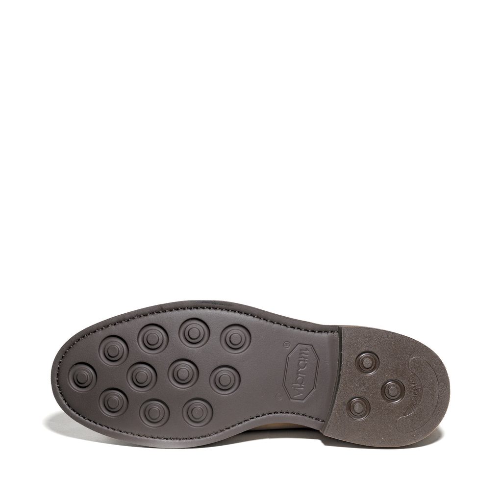 - Szwy „apron stitch” na podbiciu nadają butom nieformalnej elegancji