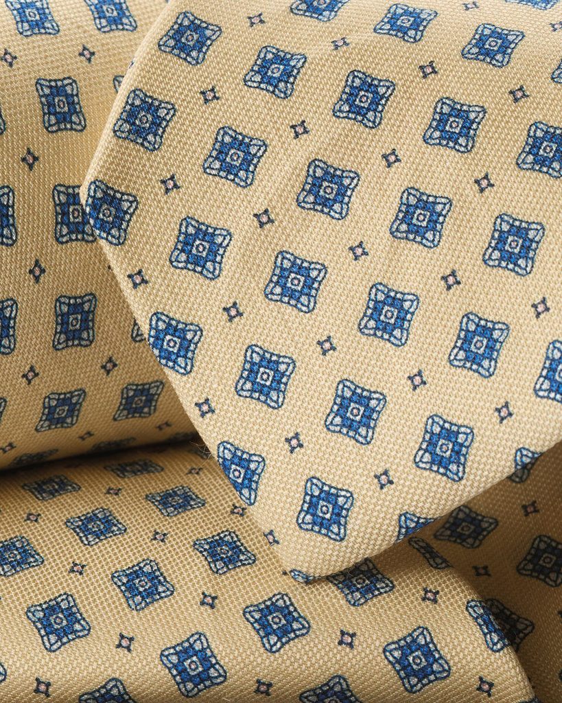 Letni krawat wykonany z mieszanki lnu i jedwabiu chlubi się pięknym kontrastującym wzorem. Najbardziej docenią go esteci, którzy lubią uzupełniać casualowe garnitury detalami, które podkreślają osobowość. Jednak pasują też na wiele innych okazji. Noś odpowiedzialnie!