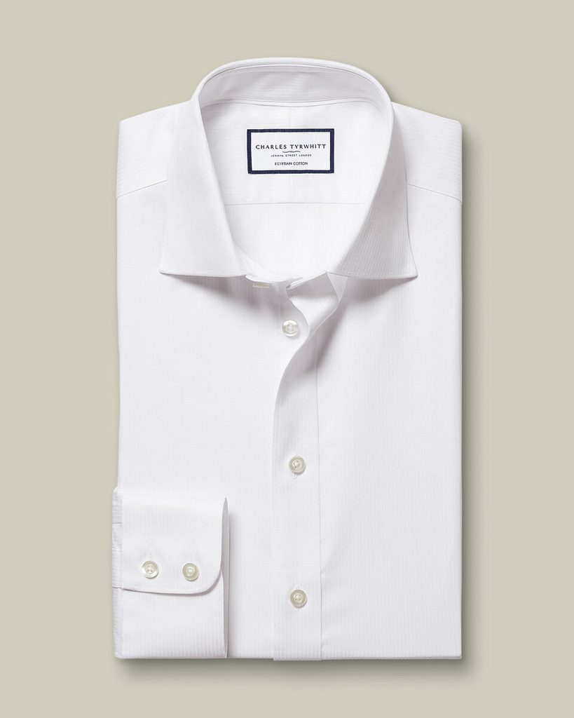 Biała koszula Charles Tyrwhitt – podstawa garderoby, na której możesz polegać w każdej sytuacji. W tym przypadku w subtelne paski. Precyzyjnie skrojona, wykonana z lekkiej i oddychającej bawełny, która jest łatwa w prasowaniu i zachowuje idealnie czysty wygląd przez cały dzień.