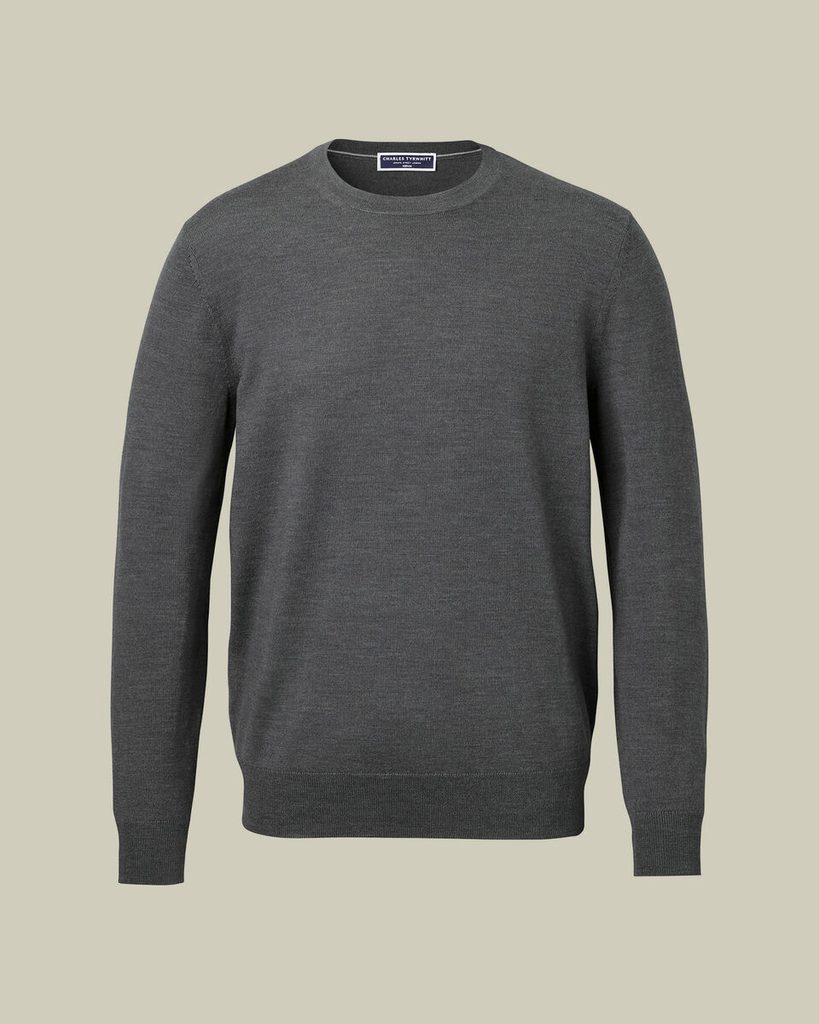 Charles Tyrwhitt Merino Crew Neck Jumper — Grey