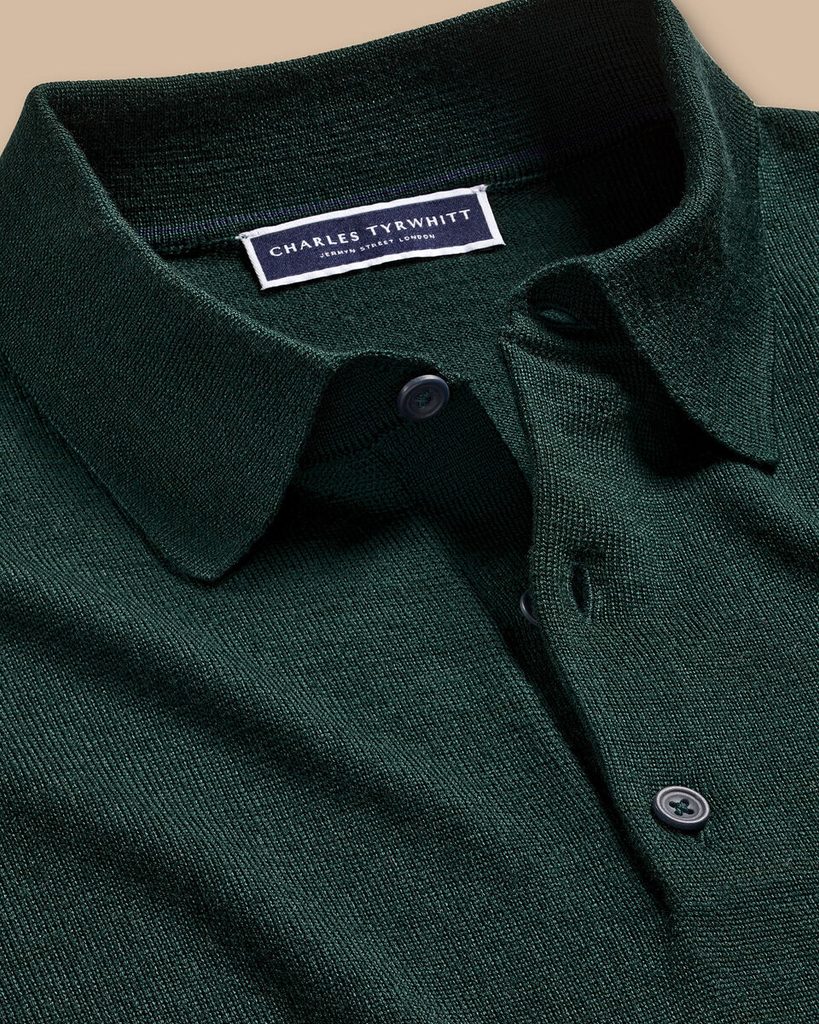 Charles Tyrwhitt Merino Polo Jumper — Forest Green