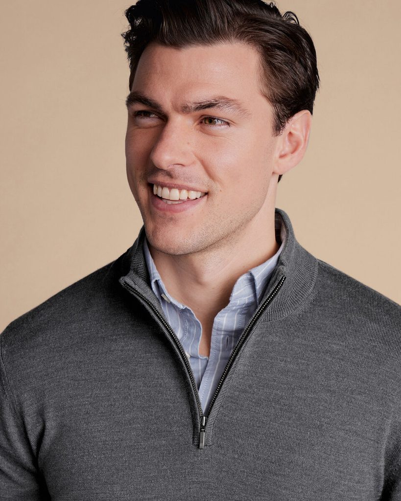 Charles Tyrwhitt Merino Zip Neck Jumper — Grey