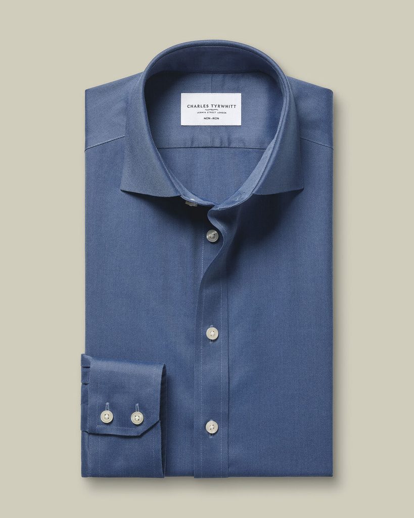 Charles Tyrwhitt Non-Iron Twill Shirt — Denim Blue Slim fit | 38 | 84