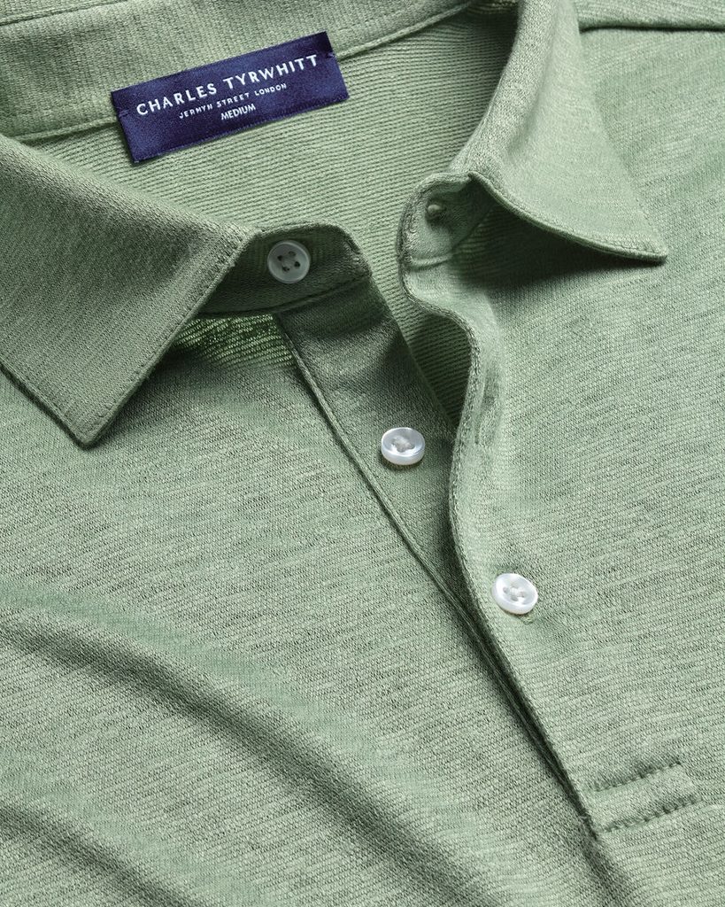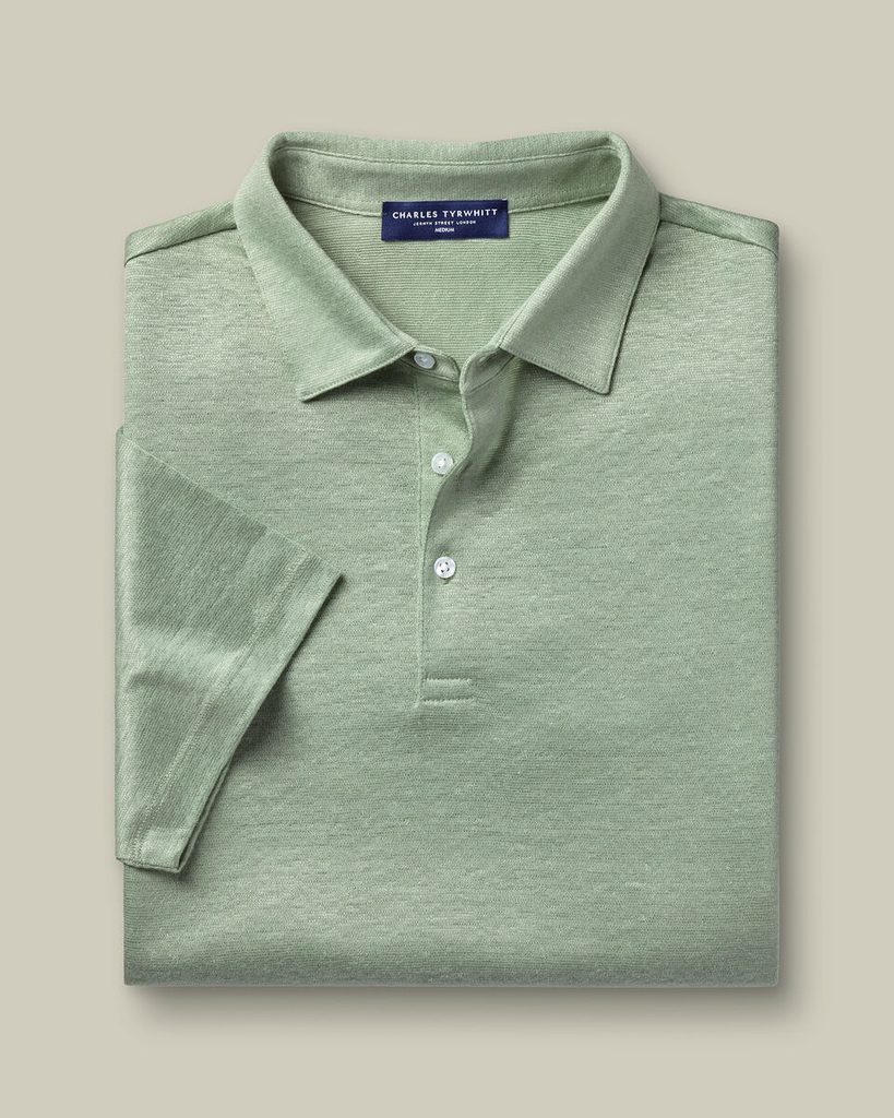 Charles Tyrwhitt Pure Linen Polo — Light Green M