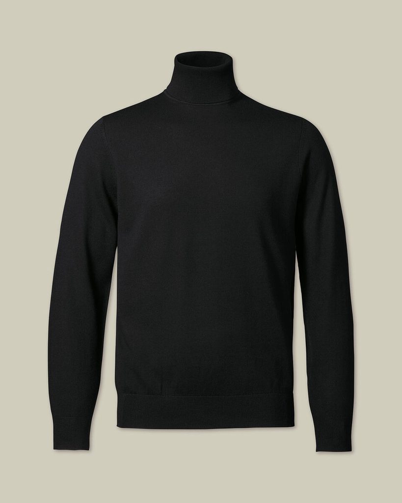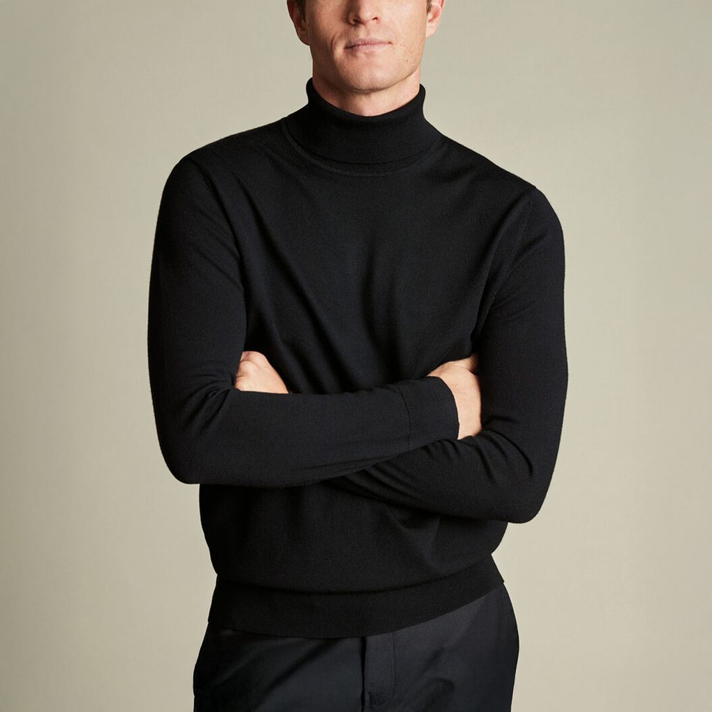 Wykonany w 100% z miękkiej wełny merino z certyfikatem Woolmark, który zapewnia maksymalną miękkość, oddychalność i odporność na zapachy. Swawolny kołnierzyk golfowy wygląda elegancko, a jednocześnie męsko, a dzięki cienkości odzieży nie dodaje zbędnej objętości pod marynarką lub płaszczem.