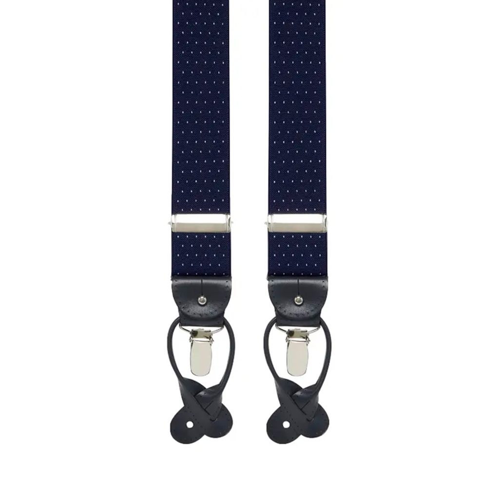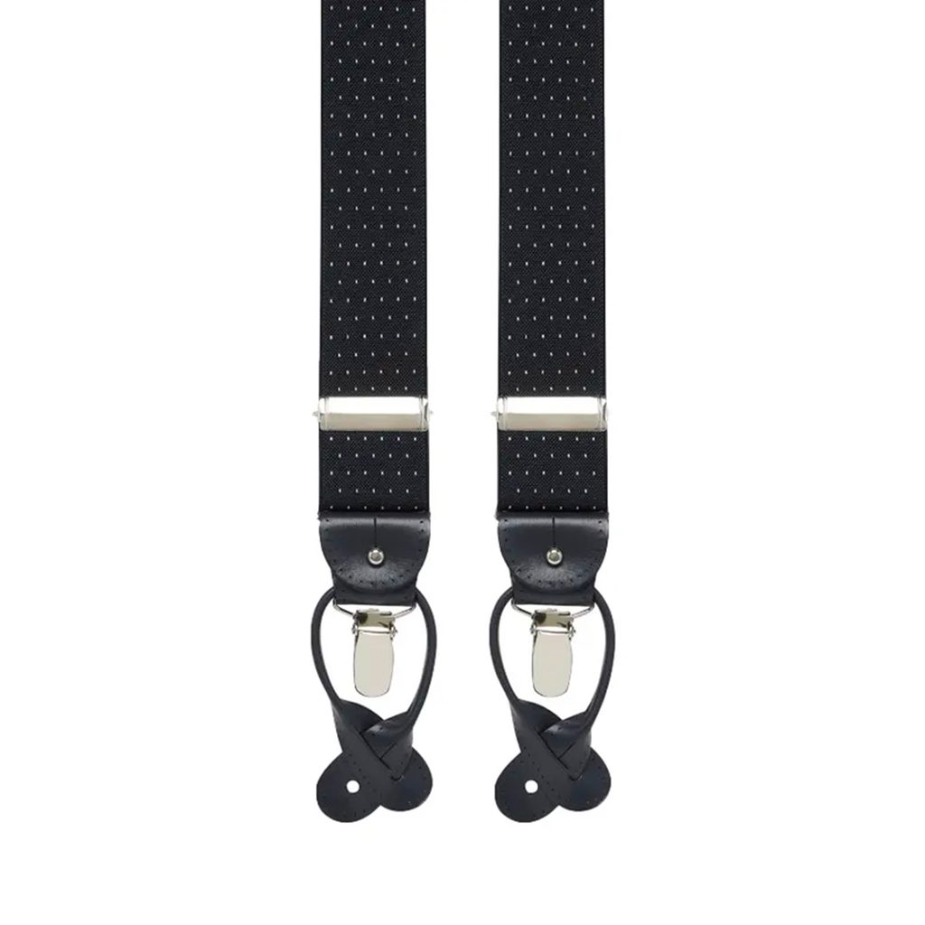 Te eleganckie, węższe szelki są dziełem znanej szwedzkiej marki House of Amanda Christensen. Są wykonane z elastycznego i delikatnego materiału, mają skórzane klamry w stylu retro i można je kupić w trzech kolorach, zawsze z delikatnymi białymi kropkami.
