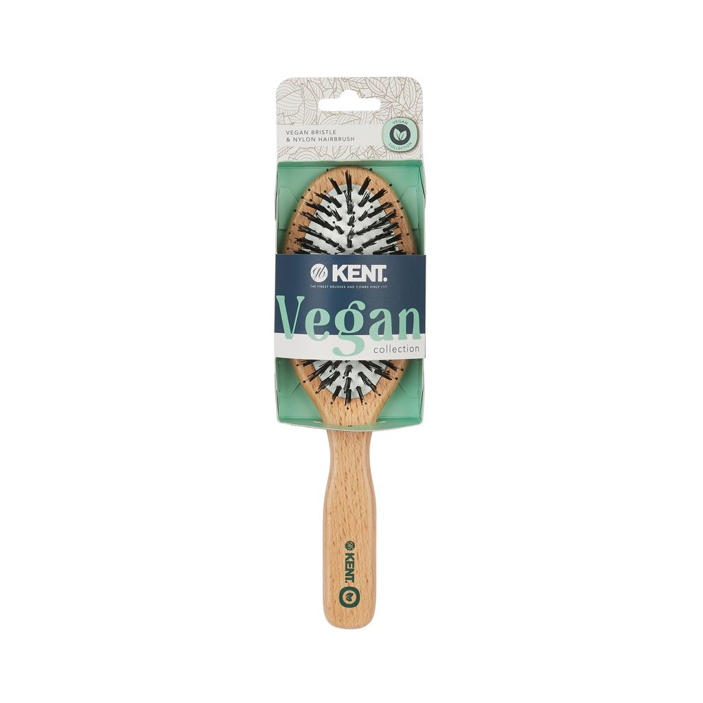 Większa owalna szczotka z poduszką do szybkiego i łatwego suszenia i stylizacji z rączką z drewna bukowego wyposażoną w kombinację syntetycznego włosia i drobniejszego nylonowego włosia vegan-friendly. Doskonała do włosów krótkich i średniej długości.
