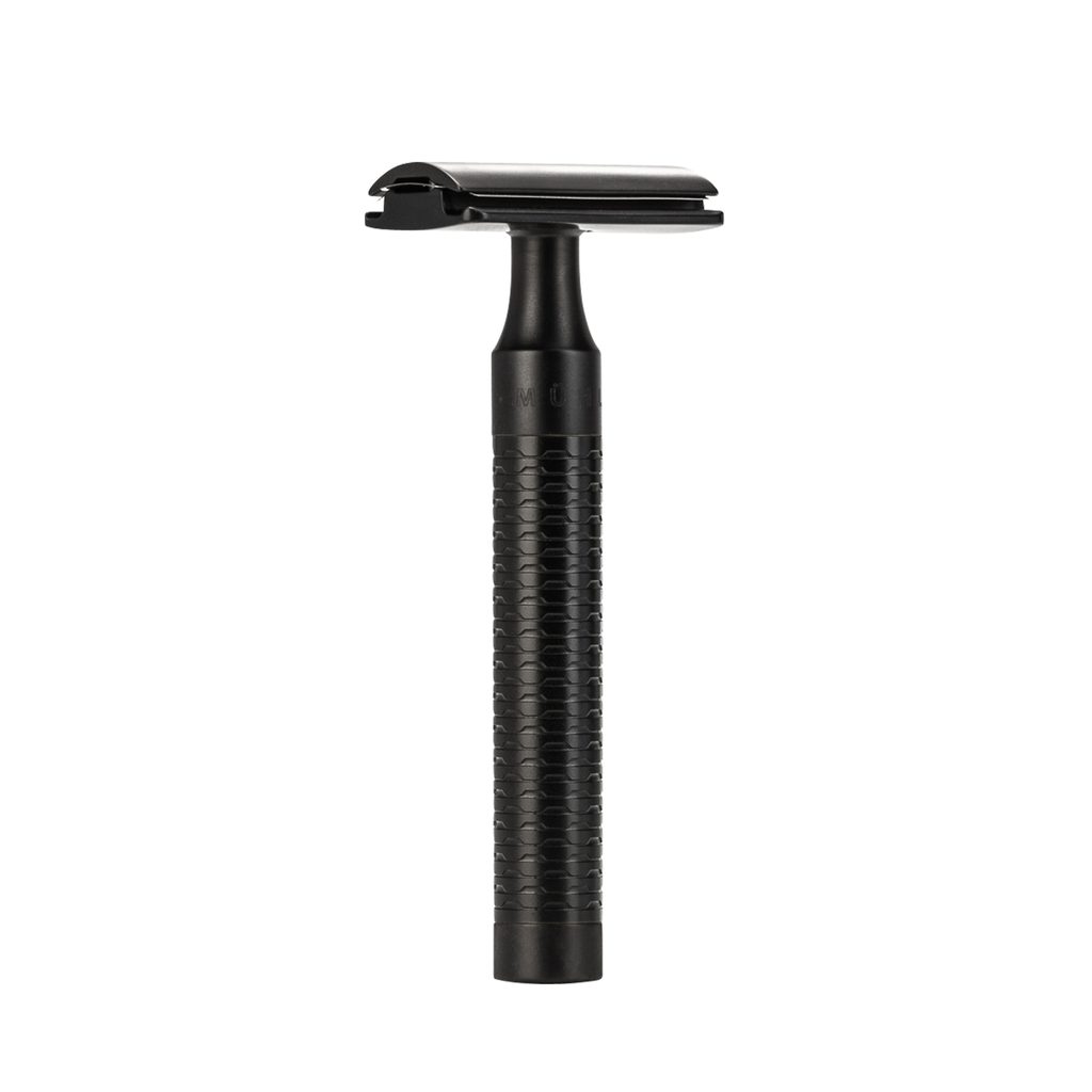 Solidna i maksymalnie czysta pod względem wzornictwa maszynka do golenia Mühle ROCCA z zamkniętą głowicą na klasyczne żyletki, która wybaczy nawet lekko niepewną rękę i ogólnie goli delikatniej oraz stylowym mechanizmem ze stali nierdzewnej w kolorze czarnym.