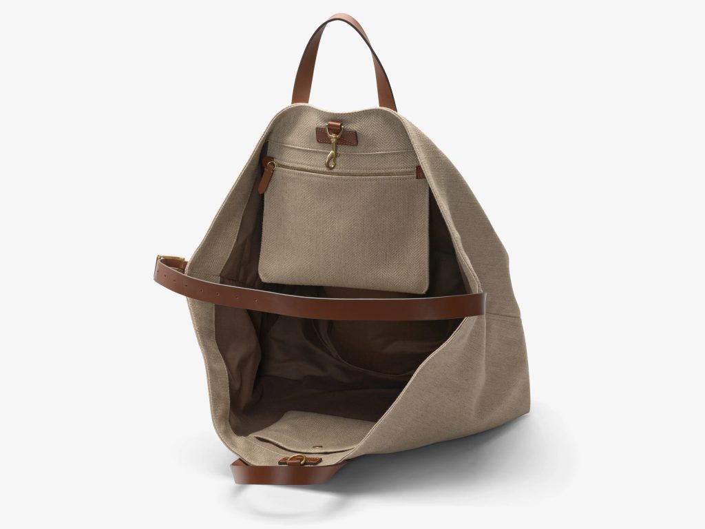 Minimalny podział wewnętrzny torby nie będzie Cię ograniczać w możliwości uporządkowania jej według własnych upodobań. A kiedy nadejdzie czas, aby wyruszyć w podróż, wystarczy chwycić płócienną torbę za uchwyty lub przewiesić ją przez ramię. Oba elementy wykonane z najwyższej jakości włoskiej skóry full grain.