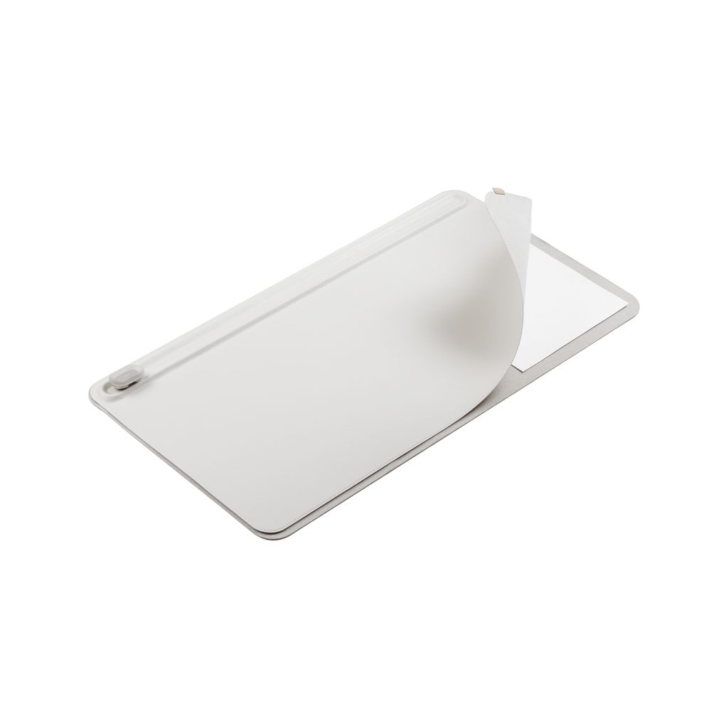 Orbitkey Desk Mat nadaje Twojemu miejscu pracy strukturę organizacyjną i wizualną. Pod gładką powierzchnią wykonaną w 100% ze skóry wegańskiej znajdziesz miejsce do przechowywania dokumentów, a na niej praktyczny pasek narzędzi, na którym możesz przechowywać drobiazgi. Istnieje również regulowany ogranicznik magnetyczny do kabli, który raz na zawsze przywróci porządek między splątanymi przewodami.