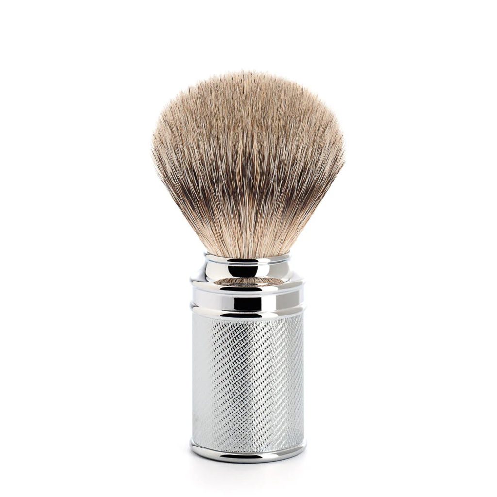 Pędzel do golenia z najwyższej jakości, a tym samym najlepszego włosia borsuczego jakości silvertip. Najlepsza jakość, ponieważ borsuk miał je na sobie w kilku miejscach. Średnica pędzla M. Więc ani olbrzymi królewski, ani mały podróżny, tylko coś pomiędzy.