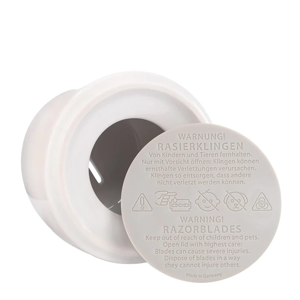 Porcelanowe naczynie do przechowywania zużytych żyletek, których może pomieścić się do 200 sztuk. W górnej części znajduje się otwór – w istocie otwór do skarbonki na drobne, ale węższy i bez przyjemnej nagrody po rozbiciu.