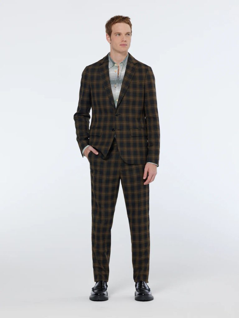 W tej jednorzędowej casualowej marynarce dominuje subtelna kratka, z daleka przypominająca klasyczną kratkę Prince of Wales. Zewnętrzna strona jest wykonana z poliestru, a podszewka z wiskozy. Dzięki temu można ją nosić przez cały rok (może z wyjątkiem najgorętszych dni) - podszewka jest tylko w jednej czwartej - do kieszeni na piersi - więc nie powinno Ci grozić przegrzanie.