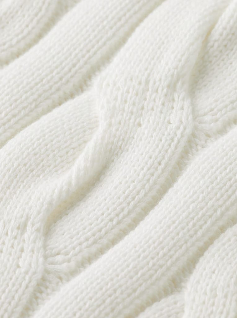 - Tekstura typu cable knit na korpusie i rękach