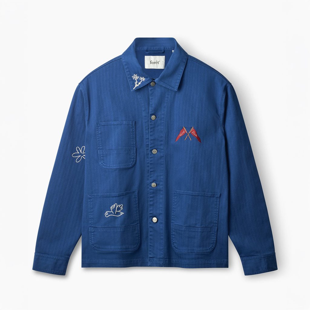 Forét robi overshirty regularnie – a konkretnie model Forager to wspaniały dodatek letniej kolekcji na rok 2026. Ma styl inspirowany workwearem, klasyczny krój z mocnej bawełny organicznej, tym razem w stonowanym niebieskim kolorze, a przede wszystkim jest usiany kolorowymi haftami. Na piersi para proporczyków (harcerski motyw całej kolekcji), na plecach duży napis, a do tego coś ekstra.