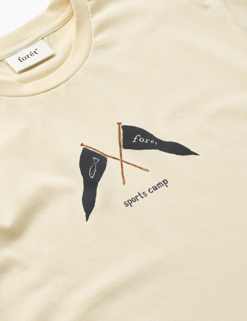 Czysty i niewymuszony model, który pozwoli Ci wrócić myślami do dziecięcych obozów sportowych na łonie natury. Pod dwiema chorągiewkami kryje się w 100% organiczna bawełna — przyjemna w noszeniu i przyjazna dla środowiska. Klasyczny krój sprawia, że bez trudu połączysz go z jeansami, spodniami i szortami. To uniwersalna baza codziennej garderoby — coś, co forét po prostu potrafi.